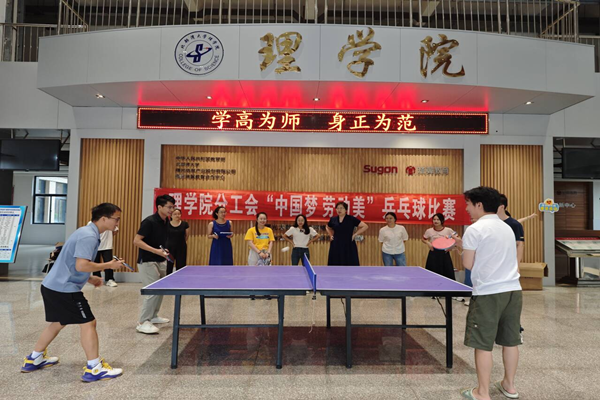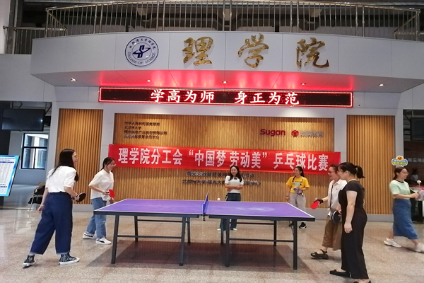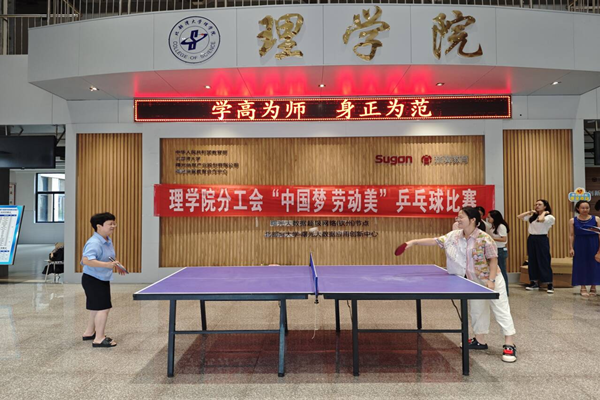 在第40个教师节到来之际,为弘扬尊师重教的传统美德,丰富教职工的业余文化生活,理学院分工会于9月10日教师节当天在1号教学楼一楼大厅举办了“中国梦,劳动美”乒乓球比赛。