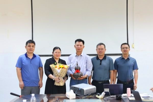 最后,容泽文常务副主席及学院领导班子代表全体职工向覃志武同志赠送了鲜花和纪念品,以表达对他的敬意与祝福。
