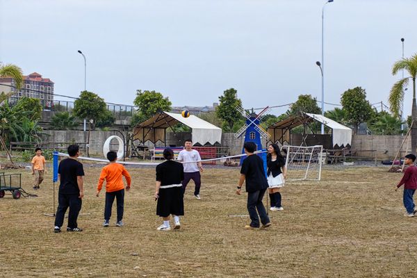团建活动内容丰富多样,包括美食制作、歌曲大家唱、亲子排球比赛等多个环节互动游戏。在互动游戏环节,教职工们积极参与,充分展现了个人风采和团结精神。