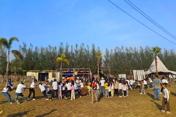 活动现场,拔河比赛率先拉开帷幕,营地中互相组队,各队成员紧握绳索,齐声呐喊,奋力拼搏,展现出强大的团队凝聚力与拼搏精神。抓鸡活动趣味十足,老师们在场地中与鸡群展开 “追逐战”,欢笑声此起彼伏,场面热闹非凡。随后的烧烤环节开启,大家围坐在一起,亲手烤制美食,分享着烹饪的技巧与快乐,彼此交流着活动中的趣事与工作心得,进一步增进了感情。